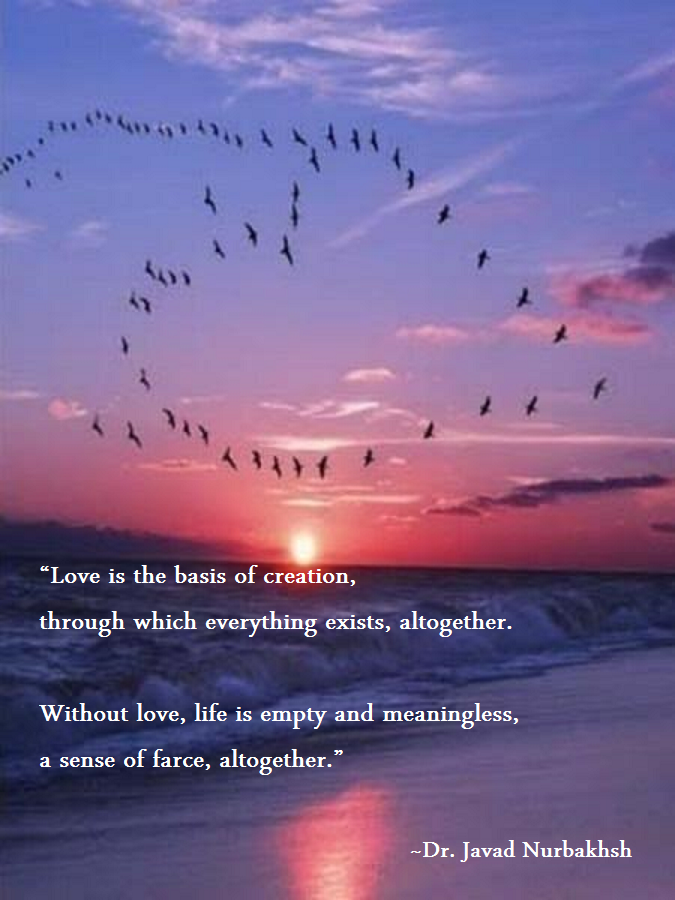 Posted on May 15, 2017 by michigansufi “The Basis of Creation” excerpt from Divan-e Nurbakhsh Poems of a Sufi Master Dr. Javad Nurbakhsh (Page 81) Share this: Click to share on X (Opens in new window) X Click to share on Facebook (Opens in new window) Facebook Like Loading... Related