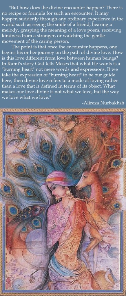 Posted on February 14, 2021 by michigansufi “Divine Love” excerpt from SUFI Magazine Issue 81 Summer 2011 (Page 9) Share this: Click to share on X (Opens in new window) X Click to share on Facebook (Opens in new window) Facebook Like Loading... Related